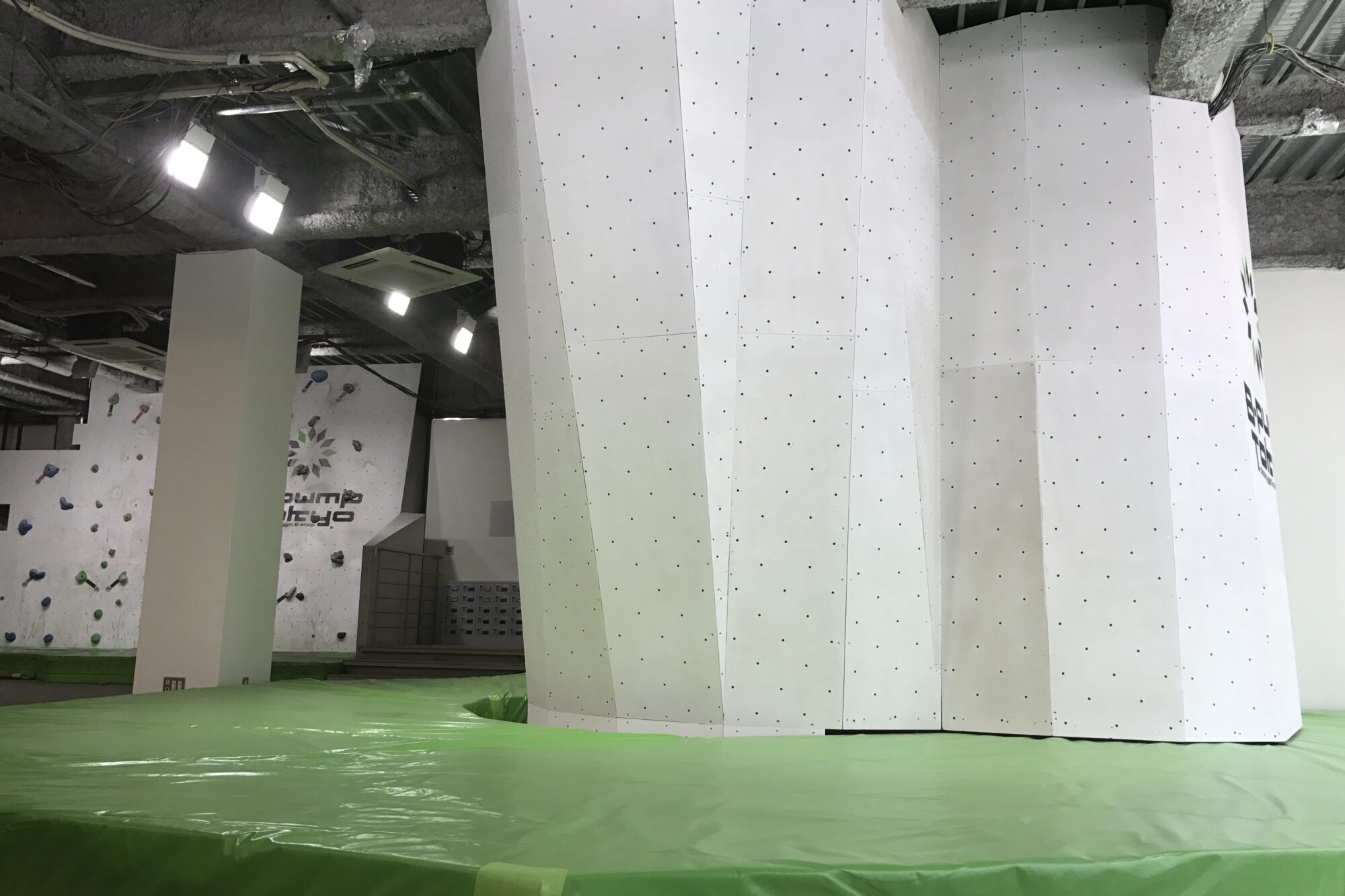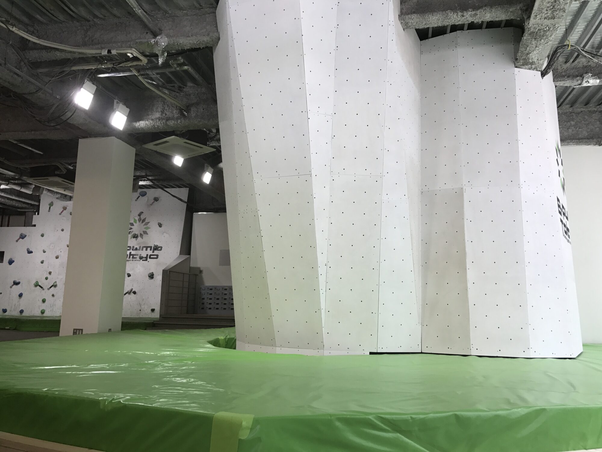 あのエリアは天井が低いからクライミングウォールを作れない。。。作ったとしても強傾斜しか。。。